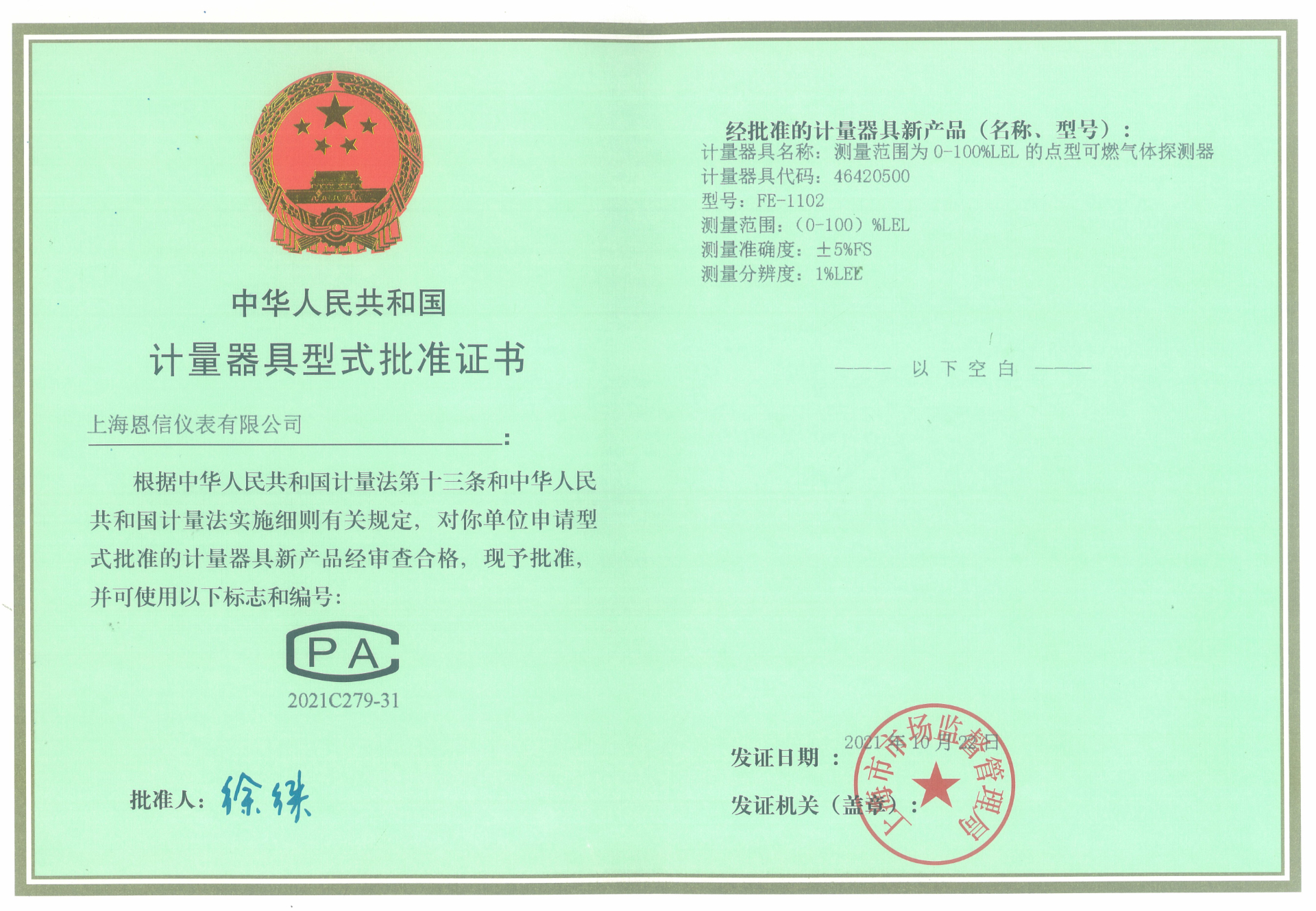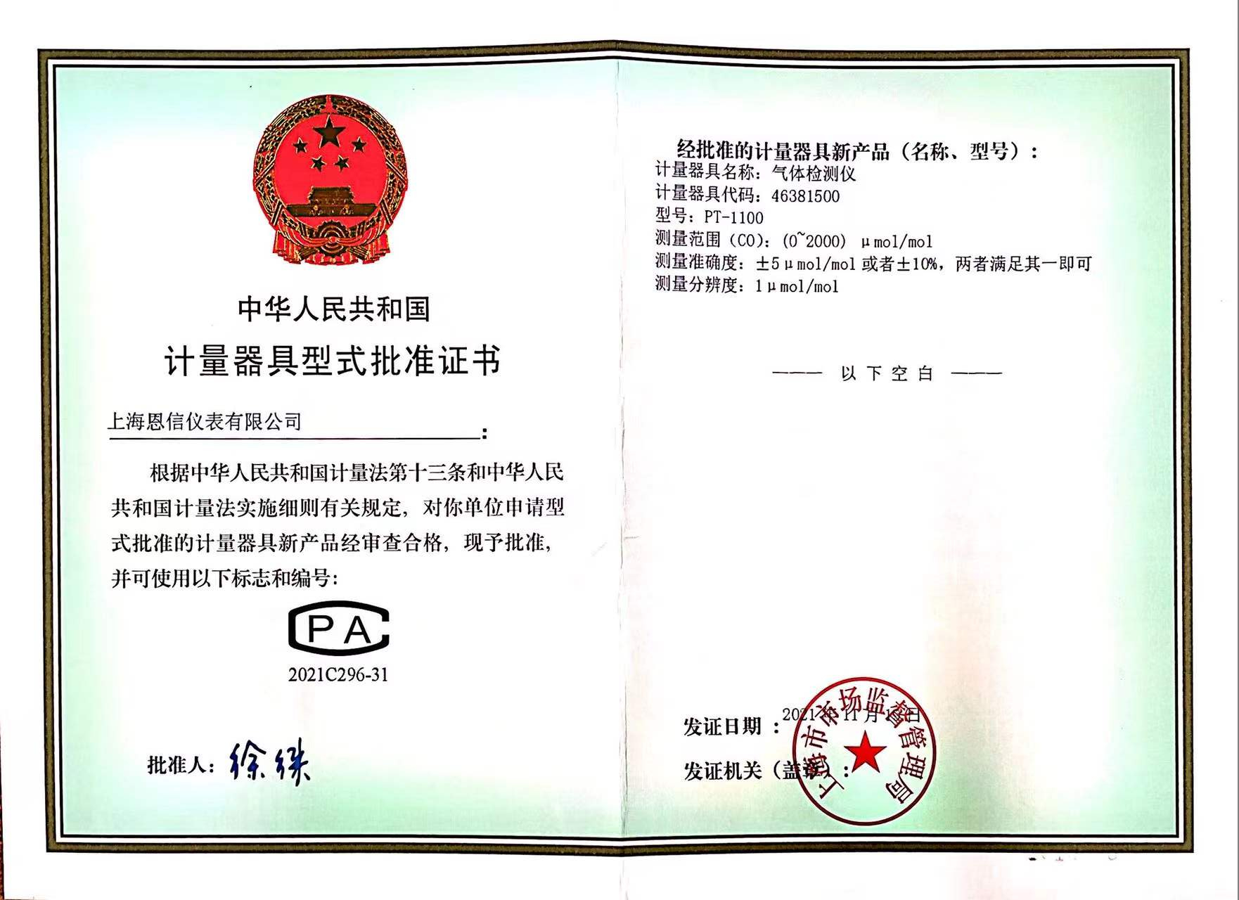 本公司所生產(chǎn)及銷售的產(chǎn)品均取得了市場監(jiān)督管理局頒發(fā)計量器具型式批準證書;防爆產(chǎn)品均經(jīng)國家指定檢驗單位檢驗通過,取得防爆合格證。