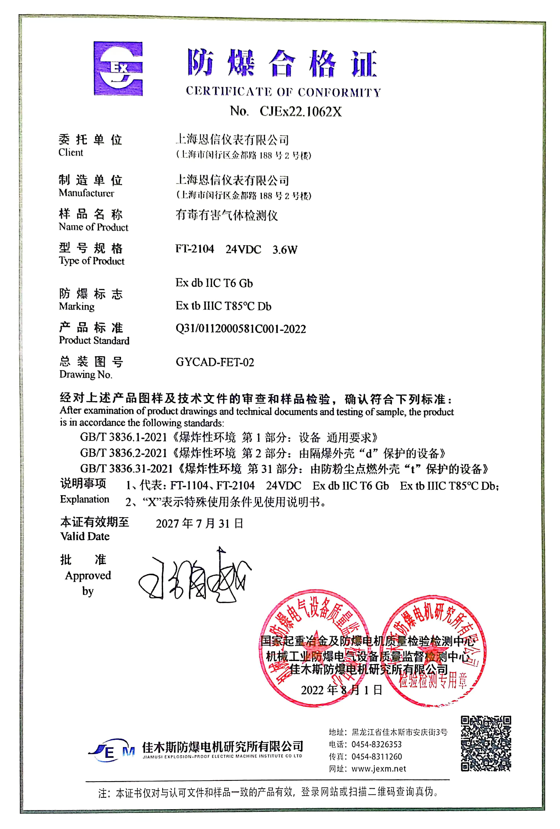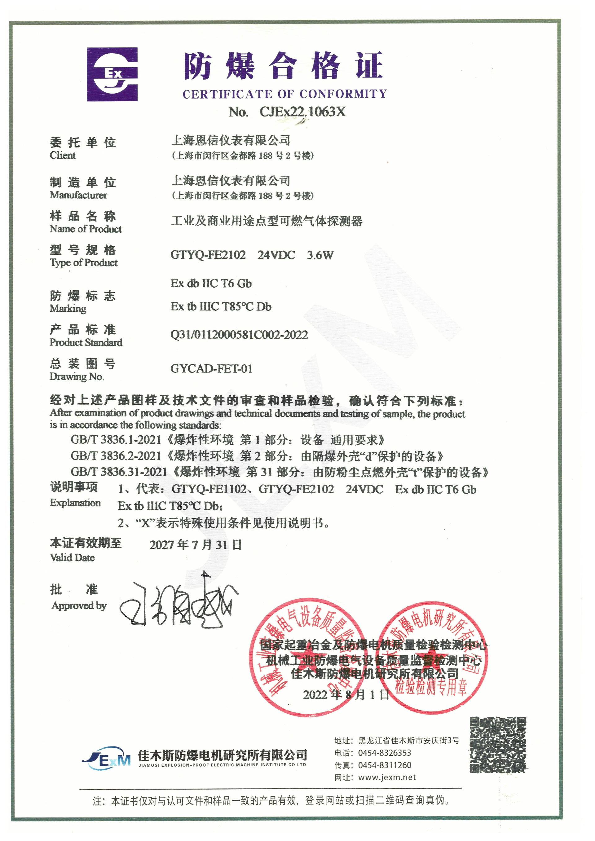 本公司所生產(chǎn)及銷售的產(chǎn)品均取得了市場監(jiān)督管理局頒發(fā)計量器具型式批準證書;防爆產(chǎn)品均經(jīng)國家指定檢驗單位檢驗通過,取得防爆合格證。